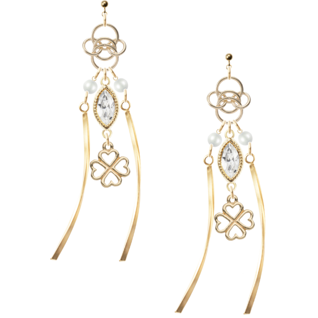 14KGFの丸玉カン付きで、高級感も演出。また、スワロフスキーマーキスクリスタルや5輪パーツ、樹脂パールも使用され、細部にもこだわりが感じられます。メタルバーも取り入れられ、全体的に上品でモダンな印象です。普段使いからパーティーシーンまで、様々なシーンで活躍すること間違いなし!自分用はもちろん、大切な人へのプレゼントにもおすすめです。